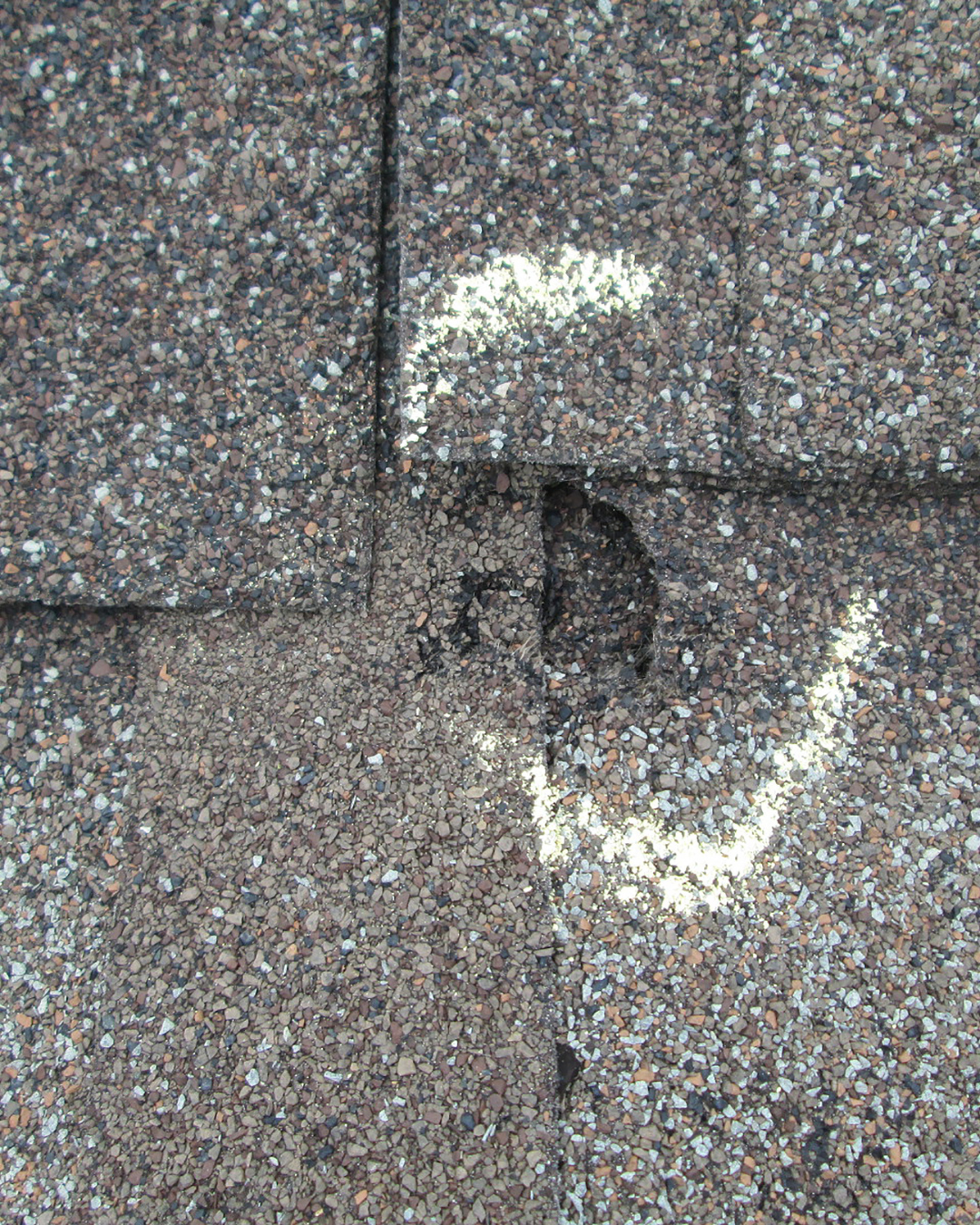 Shingles cracked at the mat level